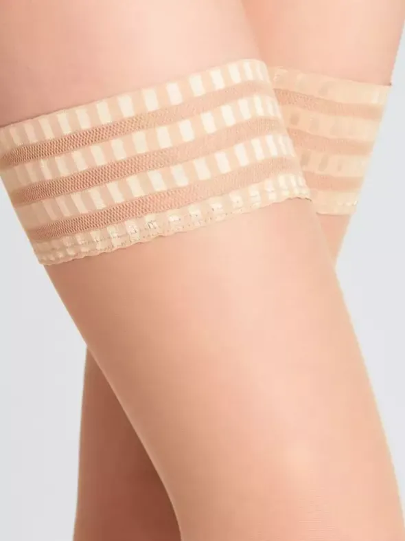 Matter, transparenter Stay-up aus nachhaltiger FALKE – WE CARE – Garnkomposition für ebenmäßig schöne Beine. Bei dem samtig feinen Material handelt es sich um mehrheitlich recyceltes Polyamid aus Produktionsresten. Das Recycling erfolgt in einem umweltschonenden mechanischen Verfahren ohne Einsatz von Chemikalien. Hergestellt ohne den Zusatz von Silikonweichmachern, überzeugt der Pure Matt 20 Stay-up nicht nur durch seine elegante und matte Optik: Fußspitzen mit feinster Softnaht und die rutschsichere Zierspitze sorgen für einen angenehmen, druckfreien Sitz. Der perfekte Begleiter im Alltag.