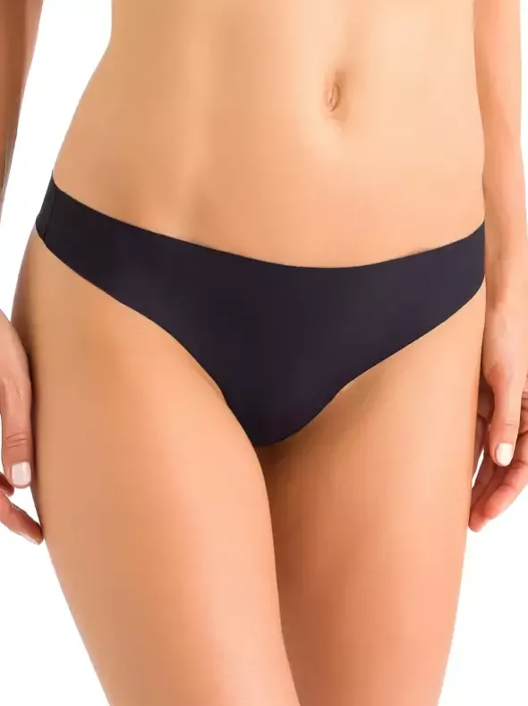 Der String aus der Serie Smooth Illusion von HANRO of Switzerland stellt weibliche Reize in den Mittelpunkt. Durch die knappe Schnittform ist das Wäschestück aus leichtem, elastischem Polyamid besonders verführerisch. Zudem macht sich der String hervorragend unter sommerlicher und anschmiegsamer Kleidung, da er über unsichtbare, geschnittene Kanten verfügt. Ein hervorragender Tragekomfort ist ebenso gewiss.