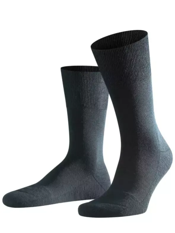 FALKE Herren Socken aus der Serie Airport Plus City. Die FALKE Herrensocken sind aus einer behaglichen Wolle Baumwollmischung gefertigt – außen wärmende Merinowolle und innen hautfreundlichen Baumwolle für klimaregulierenden und feuchtigkeitsabsorbierenden Tragekomfort. Die perfekte Passform wird durch ein verlängertes Bündchen und dämpfende Plüschsohle erzielt. Verstärkte Belastungszonen sorgen für optimale Haltbarkeit. Die exzellente Passform machen die Herrenstrümpfe von FALKE zum perfekten Begleiter für Business und Freizeit.