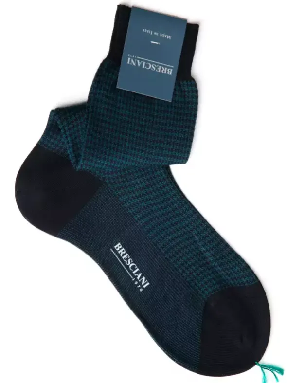Der klassische Herrenstrumpf Leo ist der perfekte Begleiter für den modernen Gentleman, welcher Wert auf Stil und Komfort legt. Gefertigt aus merzerisierter, ägyptischer Baumwolle ist Ihnen ein besonders angegehmes Hautgefühl gewiss. Das stilvolle Hahnentritt-Muster gibt jedem Outfit einen Hauch von Klasse. Das einfarbige Bündchen und die hangekettelte Spitze sorgen für zusätzlichen Komfort. Im 6er-Pack erhältlich.