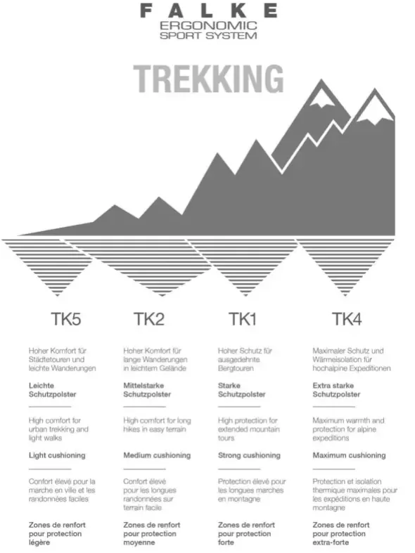 Mit ihrer extra starken Polsterung und einem Fasermix mit Lyocell sorgt die Wandersocke „TK1 Cool“ für maximalen Schutz und angenehme Kühlung bei ausgiebigen Bergtouren speziell bei warmem Wetter. Schneller Feuchtigkeitstransport sowie die optimale Passform garantieren perfekte Temperatur und hohen Komfort am Fuß.