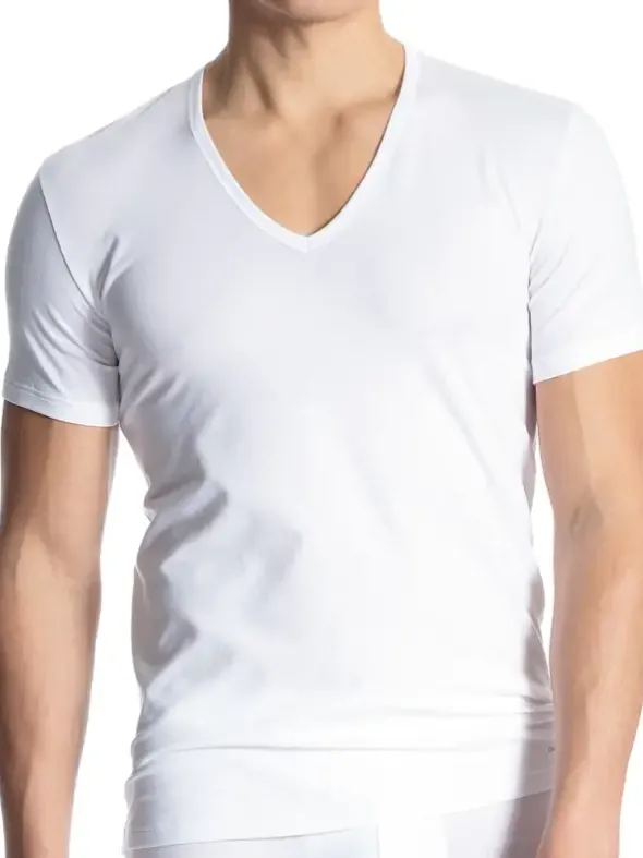 CALIDA Cotton Code – die Herren Tagwäsche Serie – hier ein Kurzarm Shirt mit V-Halsausschnitt, wahlweise in weiß oder schwarz. Das Shirt ist aus feiner Baumwolle mit geringem Elasthananteil sowie in Single Jersey Quälität gefertigt.