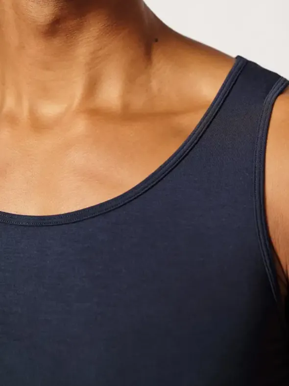 Dieses atmungsaktive Tank-Top ist ein nachhaltiges Must-have für jeden Kleiderschrank. Hergestellt aus weichem TENCEL™ Modal aus erneuerbaren Holzquellen, bietet es einen hohen Tragekomfort und eine umweltfreundliche Alternative. Der klassische Rundhalsausschnitt und die schöne Einfassung an Hals und Ärmeln verleihen dem Oberteil eine zeitlose Optik. Mit seiner engen Passform eignet sich das Tank-Top perfekt als Unterhemd oder figurbetontes Achselshirt. Der Stretchanteil sorgt für einen gemütlichen Sitz, egal ob im Alltag oder beim Sport.