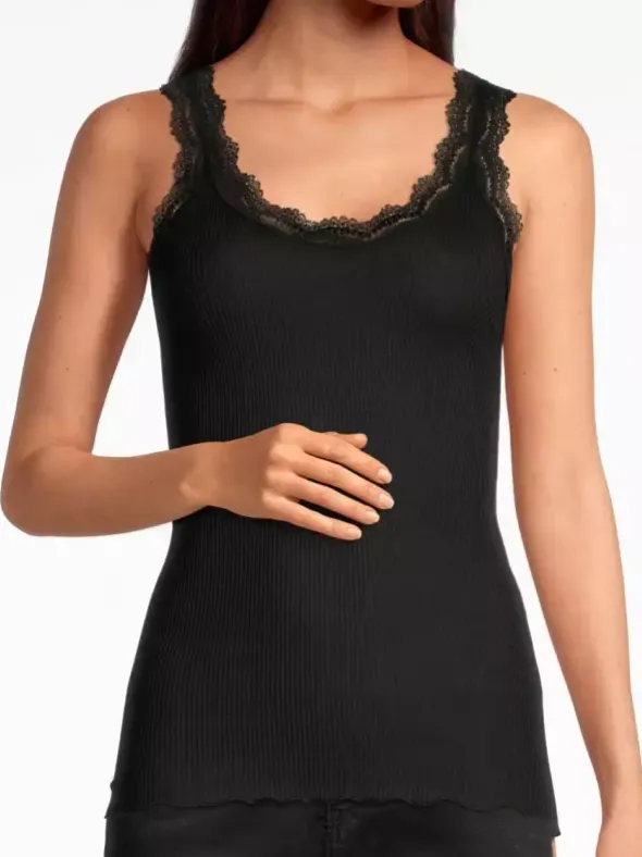 Ein Tank Top, wahlweise in weiß oder schwarz in perfekter Passform, aus der Serie Filoscozia der Luxusmarke Oscalito – Unterwäsche für Damen. Feine, zarte Optik, und schlichte Eleganz vereinen sich zu purem Luxus auf der Haut. Feine langstapelige, ägyptische Mako Baumwolle, verarbeitet zu edler Rippe verleihen dem Kleidungsstück einen weichen Griff. Ein Top mit rundem Ausschnitt und Sptzenverzierung welches höchsten Ansprüchen an Bequemlichkeit gerecht wird.