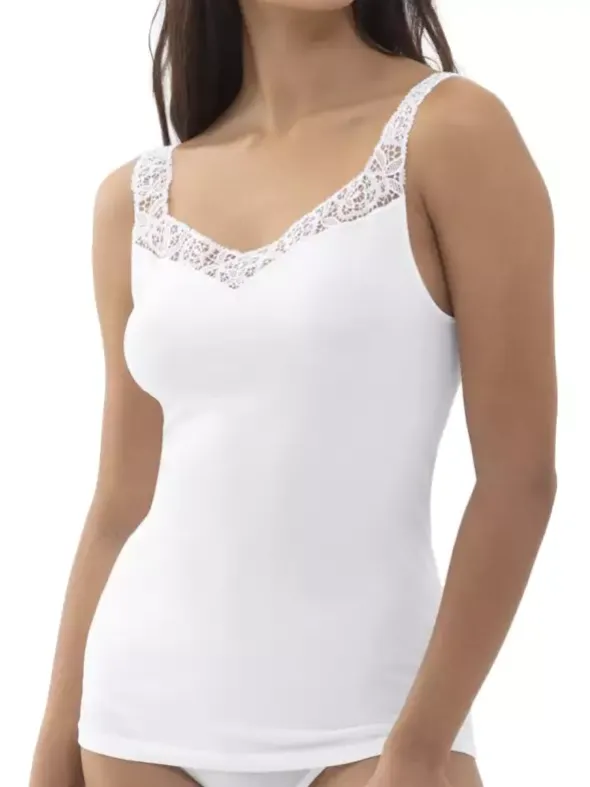 Das feminine Top aus der Serie Emotion Elegance überzeugt mit einer filigranen Spitzenverzierung am Dekolleté und den Trägern. Die innen liegende Viskose sorgt für ein weiches und anschmiegsames Hautgefühl. Außen sorgt die hochwertige Mikrofaser für einen edlen Glanz. Somit ist Ihnen ein natürlicher Wärme- und Feuchtigkeitsaustausch gewiss.