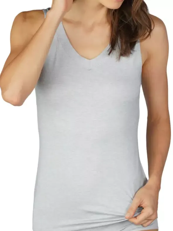 Mey Mood – die edle Wäsche Serie – hier ein bequemes und hochwertiges Tank Top mit tiefem Rundhalsausschnitt und enger Passform. Das Top ist mit breiten Trägern und flachen Abschluss sowie aus einem hochwertigen Mix aus MicroModal und Polyester mit Coolmax Technologie und geringem Elasthananteil gefertigt. Diese wunderbare Kombination sorgt für perfektes Hautklima und behaglichen Tragekomfort. Finden Sie Ihren individuellen Look mit der neuen Serie Mey Mood.