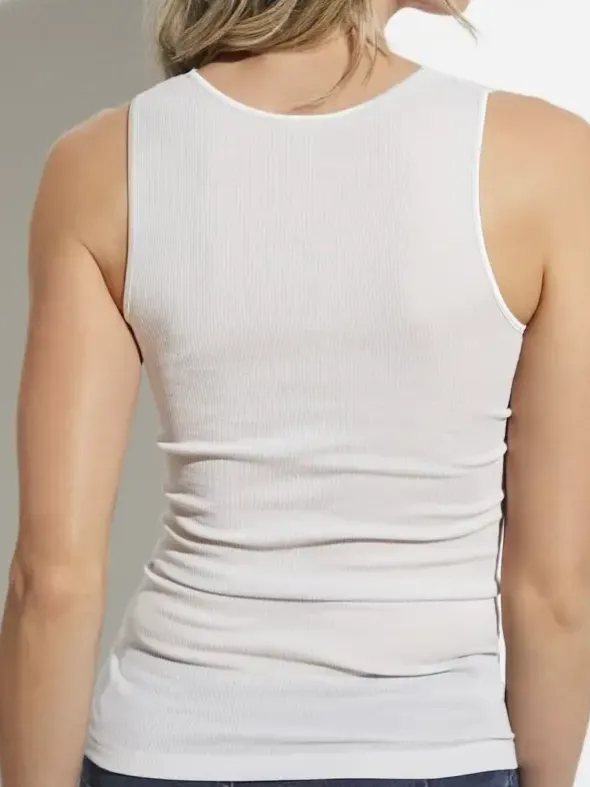 Dieser einzigartige Style wird nachhaltig und von Hand in der Schweiz gefertigt. Die feine Mischung aus exklusiver Seide und und wärmender Merinowolle schmiegt sich luxuriös an Ihren Körper, wie eine zweite Haut. Das V-Shirt ohne Arm besitzt einen hoch geschnittenen Rücken und wird ohne störende Seitennaht verarbeitet. Feinste Spitze ziert den Halsausschnitt.