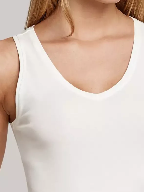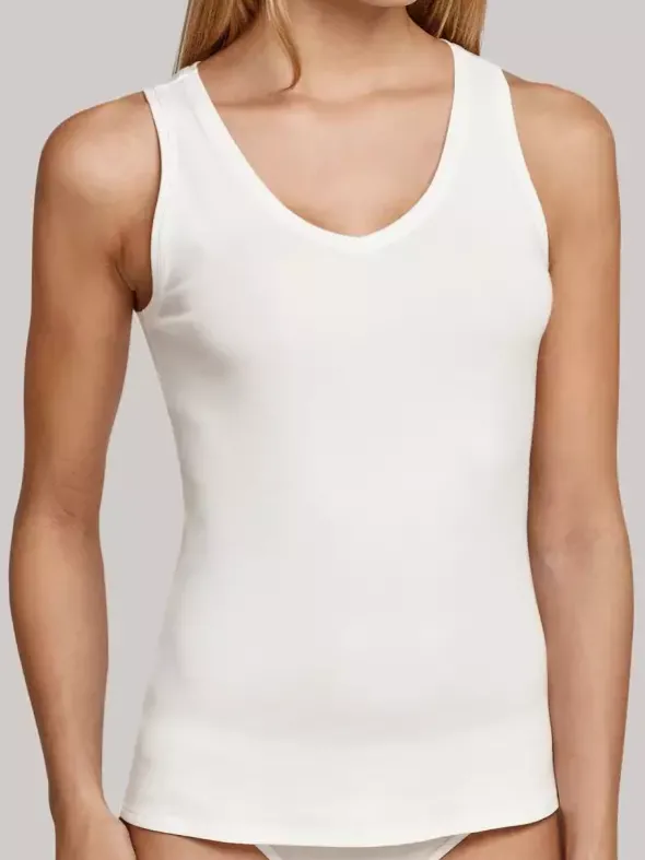 Aus der Schiesser Damenlingerie Naturschönheit ein sehr bequemes und schlichtes Tank Top mit schönem Ausschnitt und mit perfekter Passform. Feine Baumwolle mit geringem Elasthananteil sorgt für den perfekten Sitz. Die Basiswäsche Serie für jeden Tag.