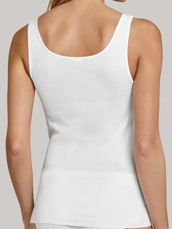 Aus der Schiesser Damenunterwäsche Serie Hemdchenkonzept ein sehr bequemes und schlichtes Tank Top ohne Seitennähte mit schönem Ausschnitt mit Spitzenapplikation und mit perfekter Passform. Reine Baumwolle sorgt für angenehmes Tragegefühl. Die Basiswäsche Serie für jeden Tag