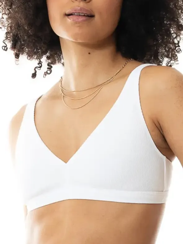 Der Triangel-BH ohne Bügel aus der Serie Organic Cotton überzeugt durch einen besonders hohen Anteil von 89 % Baumwolle, was ihn besonders atmungsaktiv und hautfreundlich macht. Zusätzlich sind die BHs nach dem Oeko-Tex® Standard 100 und GOTS zertifiziert.