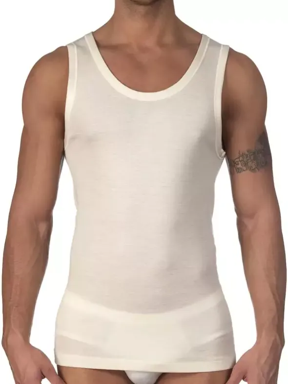 Aus der Serie Wool & Silk der Luxus Marke Oscalito Unterwäsche für den Mann – klassisches Unterhemd in creme, aus feinstem Wolle Seide Gewebe und in perfekter Passform gefertigt. Das Unterhemd ist in hoher Verarbeitungsqualität und in sportlicher Schnittführung gefertigt. Tolles Tragegefühl durch fließendes Material.