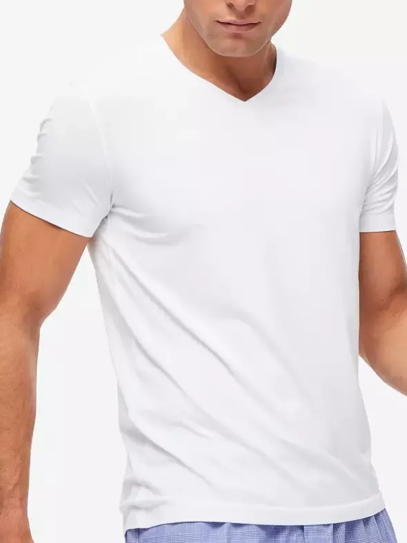 Dieses V-Shirt von Derek Rose ist ein luxuriöses Essential für den modernen Mann. Gefertigt aus einer einzigartigen Mischung aus temperaturregulierendem Mikromodal und einem Hauch dehnbarem Elasthan, wird der Shirt zum treuen Begleiter beim Relaxen, auf Reisen oder auch zum Sport. Der Stoff ist wunderbar langlebig und bleibt weich, farbecht und pillt nicht. Die formstabilen Fasern sind zudem C02-neutral hergestellt und stammen aus nachhaltig bewaldeten, europäischen Buchen. Eine chter Allrounder, der in keinem Kleiderschrank fehlen darf.