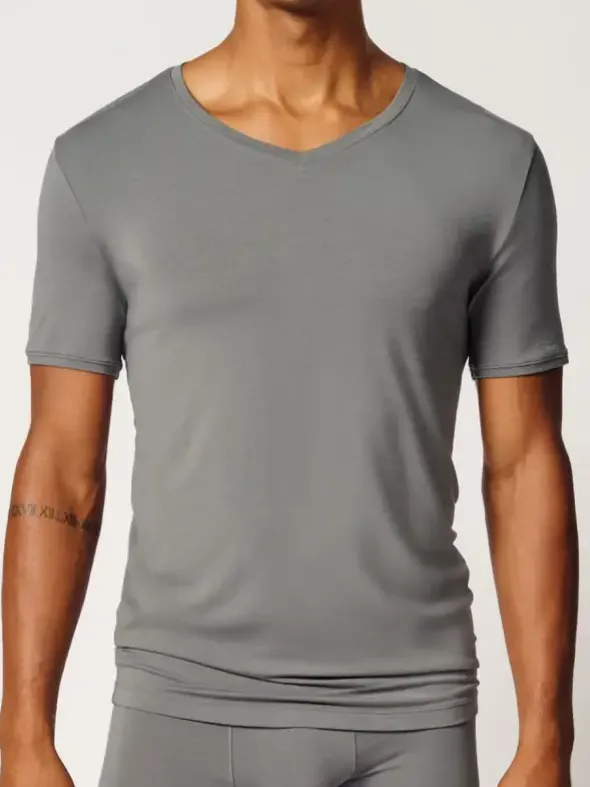 Dieses Unterhemd aus weichem TENCEL™ Modal vereint Nachhaltigkeit und Komfort in einem modernen Design. Die umweltfreundlich und verantwortungsvoll produzierten Modalfasern sorgen für ein angenehmes Tragegefühl, während der Stretchanteil für eine perfekte Passform sorgt. Mit seinem V-Ausschnitt und den fein eingefassten Hals- und Armabschlüssen eignet sich das Shirt ideal als vielseitige Unterwäsche unter Pullover, Hemd oder Hoodie. Der körpernahe Schnitt und das leichte Material machen es zu einem unverzichtbaren Klassiker in jedem Herren-Kleiderschrank.