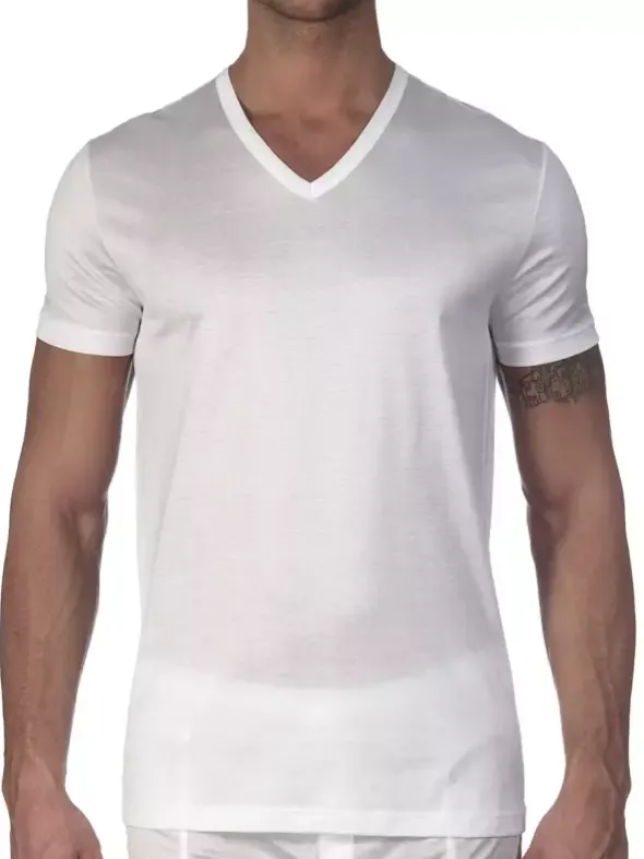 Aus der Serie Filoscozia der Luxus Marke Oscalito Unterwäsche für den Mann – klassisches Kurzarm Shirt mit V-Neck in weiß, aus feinster Baumwolle zu Single Jersey verarbeitet und in perfekter Passform gefertigt. Das Shirt ist in hoher Verarbeitungsqualität und in sportlicher Schnittführung gefertigt. Tolles Tragegefühl durch fließendes Gewebe. Ideal als Darunter für den Business Look.