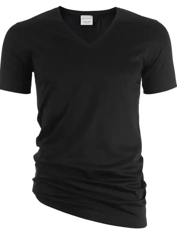 Sportlich geschnittenes Shirt mit tiefem V-Ausschnitt aus der beliebten NOVILA Serie Natural Comfort. Die reine MAKO-Baumwolle wurde zu einem Feininterlock in mercerisierter Qualität verarbeitet. Ein angenehm weiches und anschmiegsames Hautgefühl wird Sie begeistern. Der Halsausschnitt und die Armabschlüsse sind mit schmalen Bündchen modisch eingefaßt. Die reine Baumwollqualität ist bei 60° waschbar und für die Behandlung im Trockner geeignet.